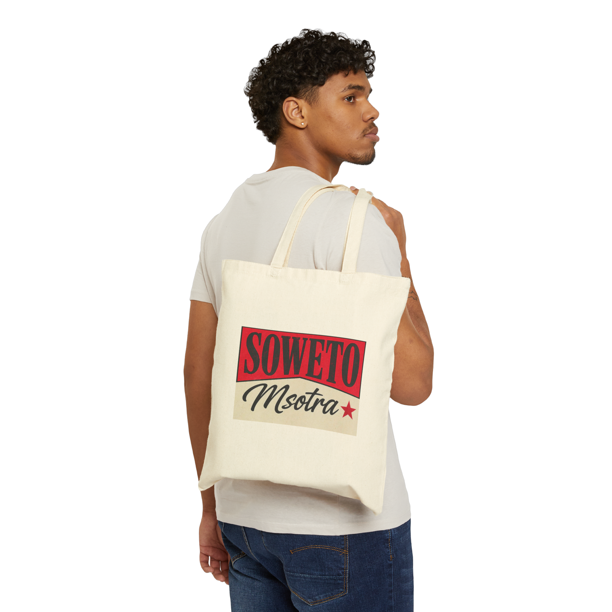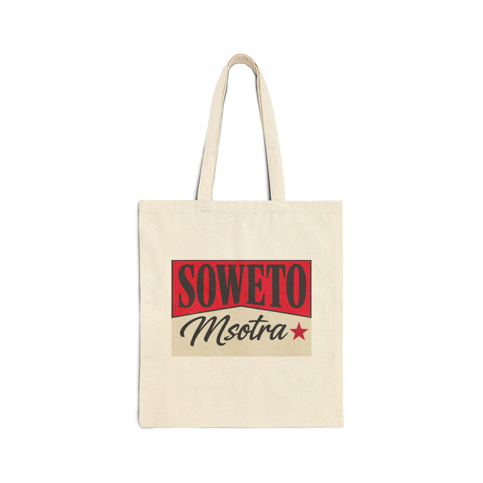 Walk proud with the Soweto Msotra Tote Bag—a natural canvas classic made for movement, style, and culture. Featuring the unmistakable red‑and‑black “SOWETO Msotra ★” graphic, this tote lets you carry your heritage with every step. Perfect for errands, campus days, or just making a statement. 💼
