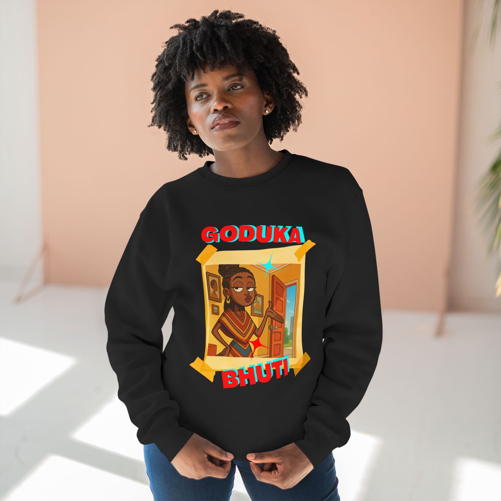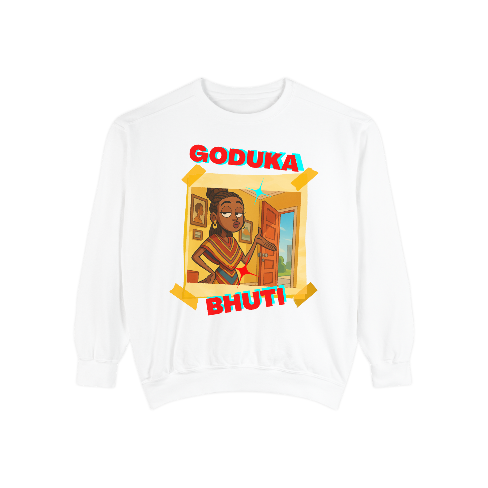 Make a statement without saying a word with the Goduka Bhuti Sweatshirt, a bold blend of comfort, culture, and attitude. This piece channels iconic township expression and sass. The message? It's time to go, bro your energy’s expired 😌.