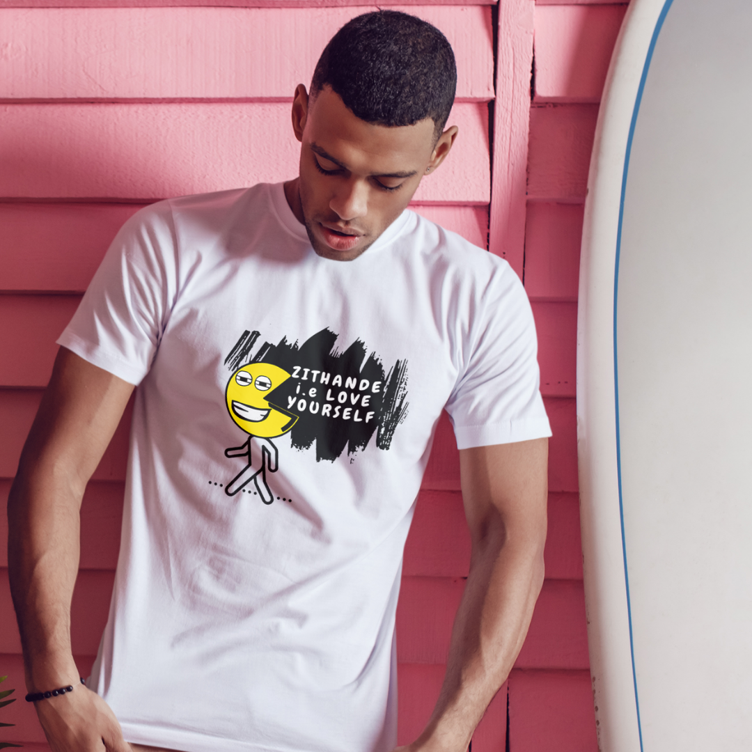 Embrace the spirit of self-love and confidence with the Zithande T-Shirt. "Zithande," a Zulu phrase meaning "love yourself," is the message behind this playful and bold design. Featuring a quirky yellow character with a beaming smile, this t-shirt reminds you to walk through life with pride and positivity. Whether you’re out with friends or just relaxing at home, this shirt serves as a daily affirmation to appreciate and love yourself