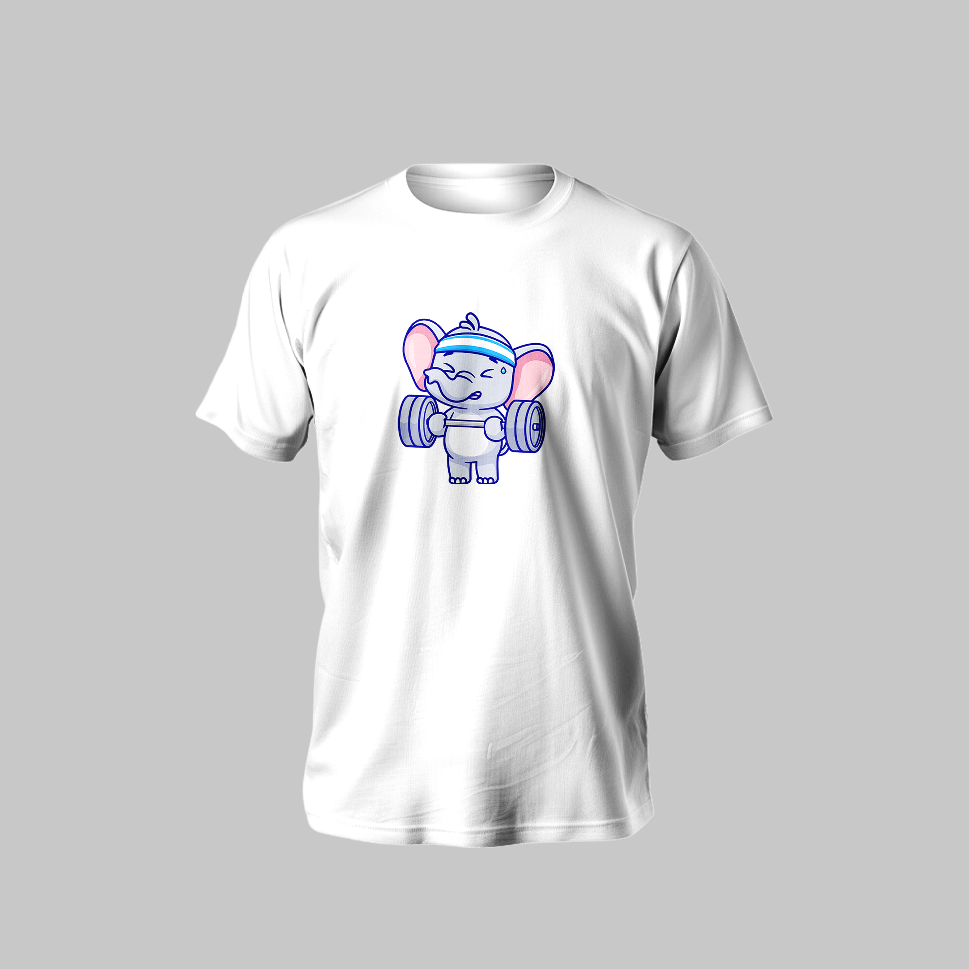 - Front Design: Adorable elephant character lifting weights, symbolizing strength and determination.