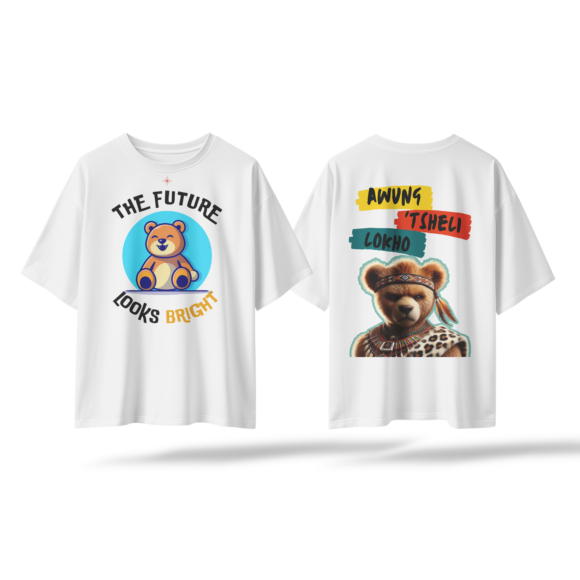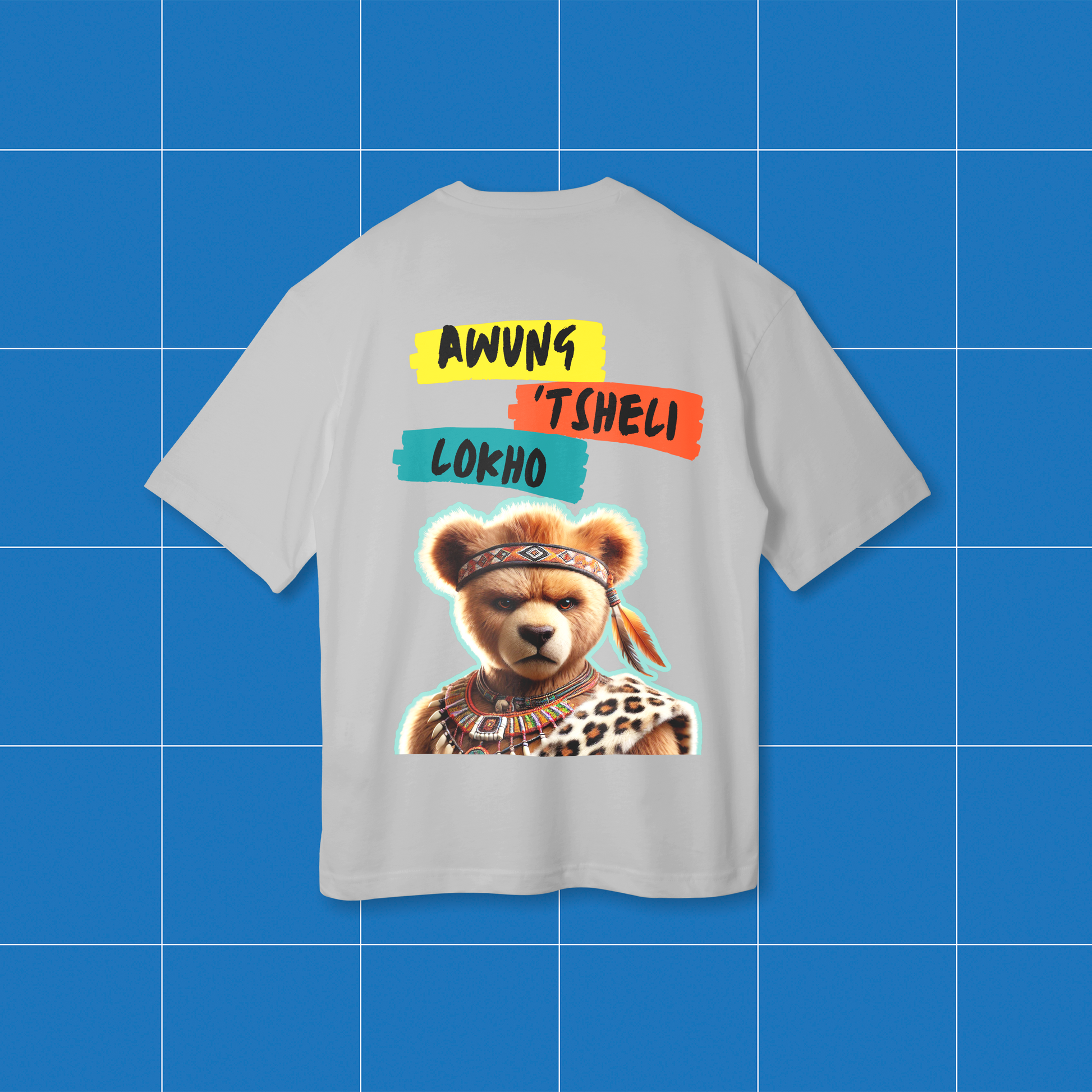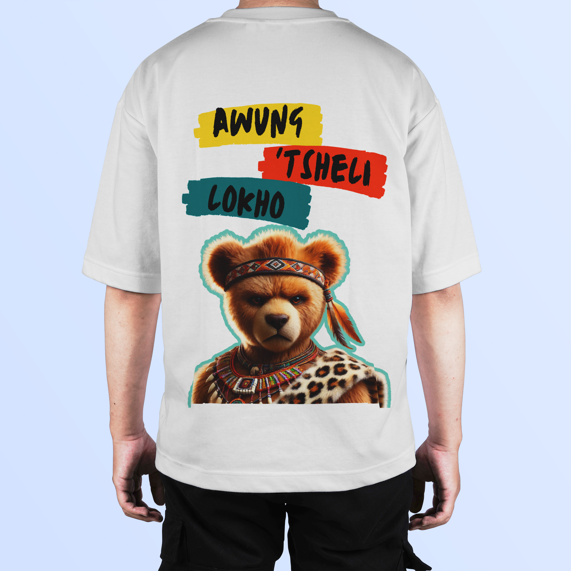 - Back Design: A richly detailed bear in traditional attire with the bold, colourful text “Awung’Tsheli Lokho,” bringing cultural pride to life.